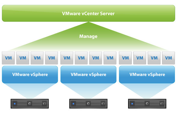 vCenter server和 vSphere client 很像,但是它和功能更加强大。vCenter server 是安装在 Window 服务器或 Linux 服务器里面。VMware vCenter server 是一个中心化的管理应用。你可以通过它管理所有的虚拟机和 ESXi 物理机。vSphere client 可以通过访问 vCenter Server 来管理 EXSi 服务器。vCenter server 是一个企业级的产品,有许多企业级的功能,像 vMotion, VMware High Availability, VMware Update Manager 和 VMware Distributed Resource Scheduler(DRS)。你可以方便的通过 vCenter server 克隆存在的虚拟机。所以,vCenter 也是 vSphere 套件的一个重要组成部分。你需要单独购买 vCenter 的 license。